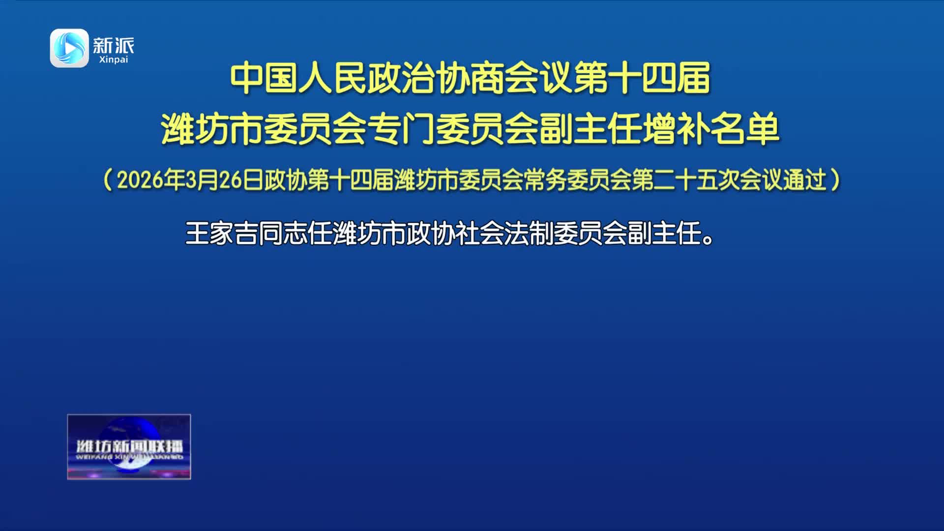 【濰坊新聞聯(lián)播】中國人民政治協(xié)商會議第十四屆濰坊市委員會專門委員會副主任增補名單