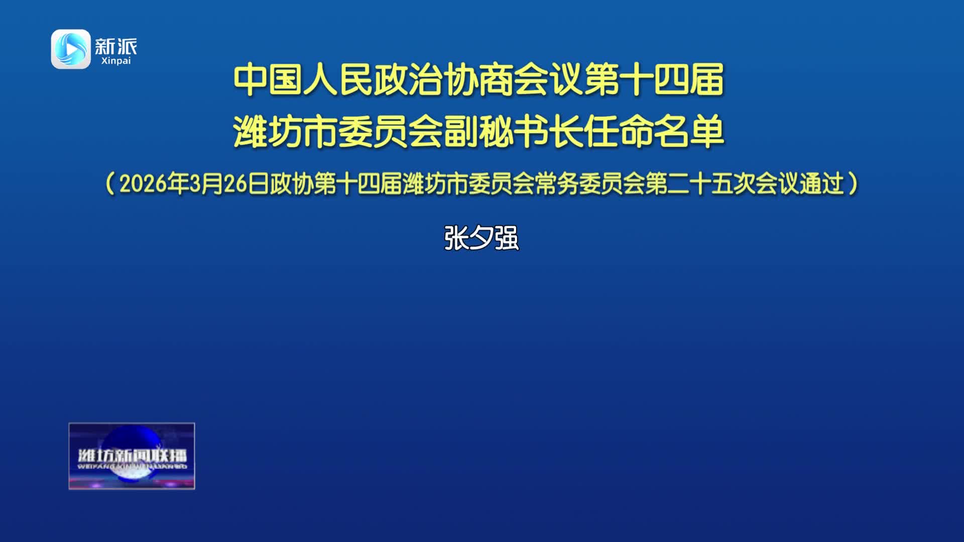 【濰坊新聞聯(lián)播】中國人民政治協(xié)商會議第十四屆濰坊市委員會副秘書長任命名單